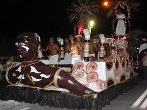 A agremiação levou quatro carros alegóricos para recontar o sofrimento do escravo e sobre os costumes do povo da época.