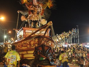 A primeira a entrar na avenida foi a escola Império do Cais, que encantou o público e arrancou aplausos com a história da escravidão no Brasil.