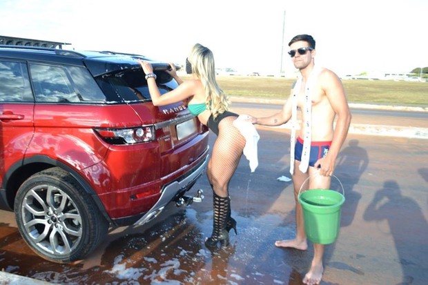 No último fim de semana, a funkeira MC Bandida se reuniu em Brasília com candidatos ao título de Mister Distrito Federal para um manifesto a favor da Operação Lava Jato. Em frente ao Congresso Nacional, eles lavaram um carro e não economizaram nas poses (constrangedoras).