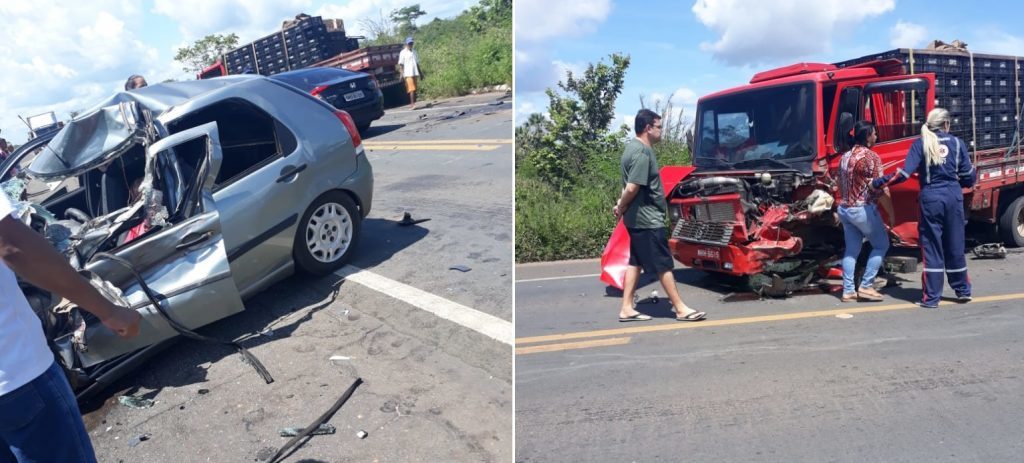 No carro de passeio havia duas pessoas, uma mulher que ficou ferida e foi resgatada pelo Serviço de Atendimento Móvel de Urgência (Samu) e um homem que morreu na hora com o impacto frontal.